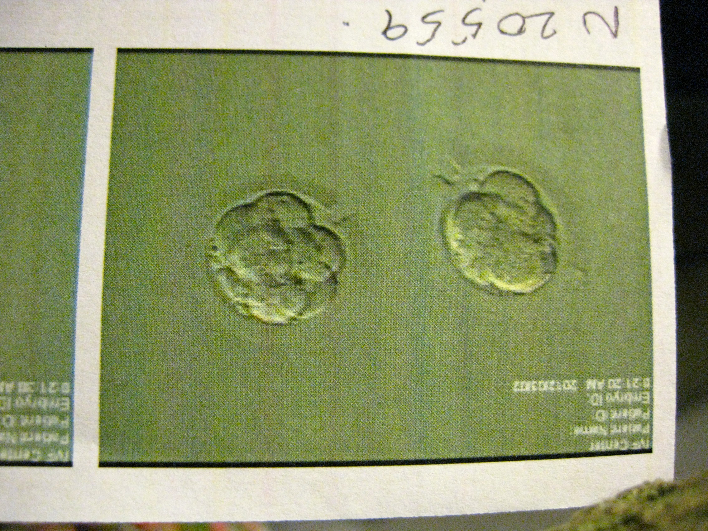 In the meantime, I got my eye on those snow baby prize fighters I was telling you about. Two 6 day blastocysts (way more further developed than my 2 3days that were transfered) are waiting in the wings (or the freezer) for whenever we are ready to do a Frozen Embryo Trasfer (FET). I am going to take a month off and then get back to business. When we first started this IVF process, my husband and I each wrote down our predictions on how many cycles (fresh and frozen) it would take for us to get pregnant. Turns out we both picked our first FET. All in all, I’d say its a decent bet…..
